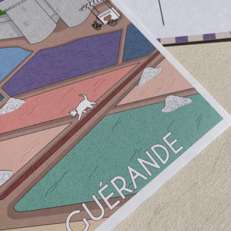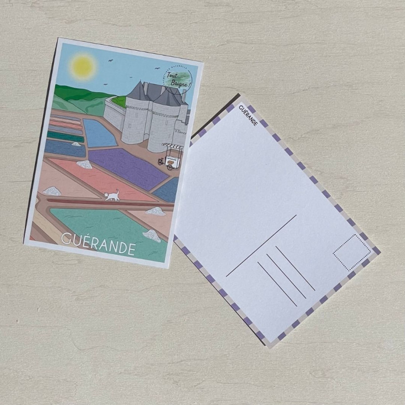 Que ce soit pour la garder ou l’envoyer, notre carte postale Guérande sera parfaite aimantée sur votre réfrigérateur, dans un joli cadre ou encore dans un livre pour marquer votre page.